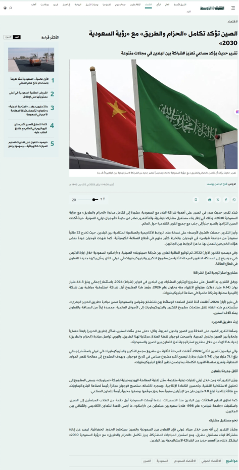 報道的結論是,在技術進步和共同雄心的支持下,持續的伙伴關系突顯了戰略合作的新時代,共建“一帶一路”倡議和“2030愿景”的融合象征著兩國的光明未來。(來源:新福建)